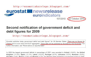 Μας είχαν βομβαρδίσει τα ΜΜΕ : “Στις 22 Οκτ. 2010, η αναφορά της Eurostat, για το χρέος”