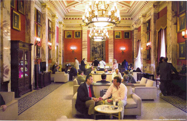 Η µεγαλύτερη κίνηση µέσα στο κτίριο παρατηρείται στο καφενείο, ιδιαίτερα στην αίθουσα καπνιζόντων, και µπροστά