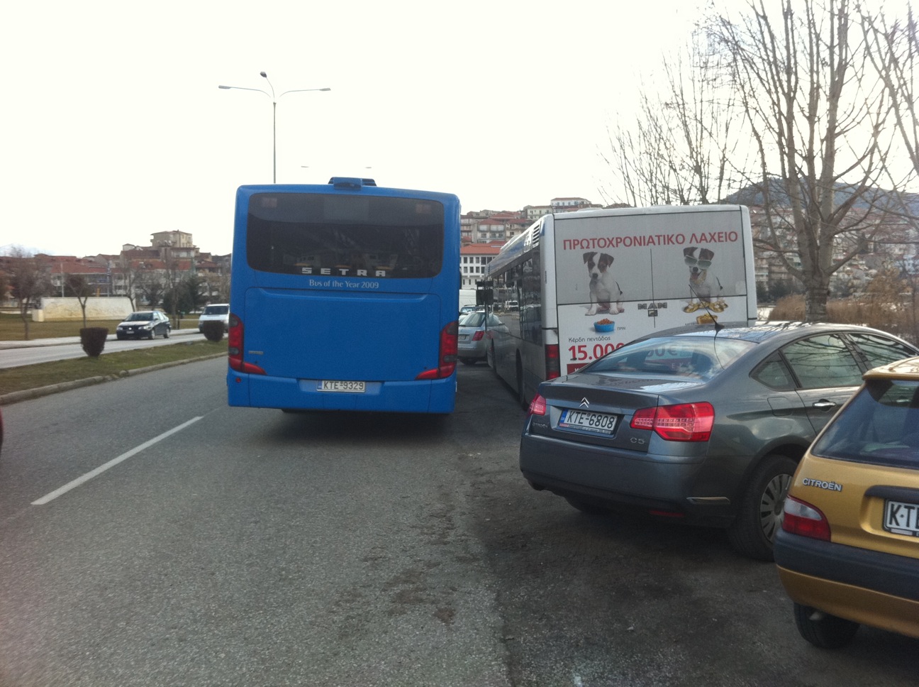 Στη μέση του δρόμου ! Η λεωφόρος των Κύκνων έχει γίνει ιδιωτικό πάρκινγκ για τρεις ιδιοκτήτες αστικών λεωφορείων.