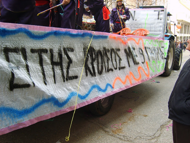 Έτσι λοιπόν ό κόσμος του έδειξε την πρωτοχρονιά με παραδοσιακό και τσουχτερό καρναβαλίστικο τρόπο ότι τον πήρε χαμπάρι.