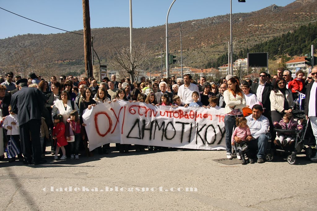 Η ηλιόλουστη ημέρα ήταν σύμμαχος για την σημερινή παρέλαση για την επέτειο της έναρξης της επανάστασης της 25ης Μαρτίου του 1821, όπου πλήθος κόσμου όλων των ηλικιών έδωσε το παρόν. Η διαφορά του φετινού εορτασμού ήταν οι διαμαρτυρίες των υπό συγχώνευση σχολείων ( Πενταβρύσου,Τσάκωνης ,Αμπελοκήπων και Γάβρου ). Οι διαμαρτυρίες ήταν ειρηνικές και