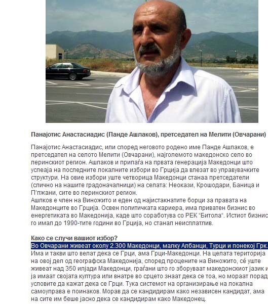 Ο ΠΑΝΑΓΙΩΤΗΣ ΑΝΑΣΤΑΣΙΑΔΗΣ Ή ΤΟ ΚΑΝΟΝΙΚΟ ΟΙΚΟΓΕΝΕΙΑΚΟ ΤΟΥ ΟΝΟΜΑ ΕΙΝΑΙ ΠΑΝΤΕ ΑΣΛΑΚΟΦ, ΕΙΝΑΙ Ο ΠΡΟΕΔΡΟΣ ΤΟΥ ΧΩΡΙΟΥ ΜΕΛΙΤΗ ΠΕΡΙΟΧΗ ΦΛΩΡΙΝΑ. …………………. ΣΕ ΑΥΤΕΣ ΤΙΣ ΕΚΛΟΓΕΣ ΑΚΟΜΑ 4 ΨΕΥΤΟΜΑΚΕΔΟΝΕΣ ΕΓΙΝΑΝ ΠΡΟΕΔΡΟΙ (ΠΑΡΟΜΟΙΟ ΜΕ ΤΟΥΣ ΔΙΚΟΥΣ ΜΑΣ ΔΗΜΑΡΧΟΥΣ) ΟΠΩΣ ΣΤΟ ΧΩΡΙΟ ΠΑΠΑΓΙΑΝΝΗ, ΒΕΥΗ ΚΑΙ ΑΧΛΑΔΑ. ΟΠΩΣ ΚΑΙ ΟΙ ΥΠΟΛΟΙΠΟΙ ΠΟΥ ΒΡΙΣΚΟΝΤΑΙ ΣΤΗΝ ΠΕΡΙΟΧΗ ΤΗΣ ΦΛΩΡΙΝΑΣ. Ο ΑΣΛΑΚΟΦ ΕΙΝΑΙ ΜΕΛΟΣ ΤΟΥ ΟΥΡΑΝΙΟΥ ΤΟΞΟΥ ΚΑΙ ΕΝΑΣ ΑΠΟ ΤΟΥΣ ΠΙΟ ΣΗΜΑΙΝΟΝΤΕΣ ΜΑΧΗΤΕΣ ΓΙΑ ΤΑ ΔΙΚΑΙΩΜΑΤΑ ΤΩΝ ΨΕΥΤΟΜΑΚΕΔΟΝΩΝ…………………………….. ΣΤΗΝ ΕΛΛΑΔΑ.