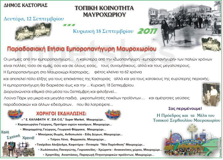 Ξεκινάει την Δευτέρα 12 Σεπτεμβρίου η Εμποροπανήγυρη στο Μαυροχώρι Καστοριάς.