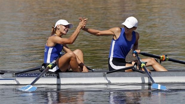 Χωρίς συναγωνισμό έτρεξαν οι χρυσές παγκόσμιες πρωταθλήτριες του διπλού σκιφ ελ. βαρών. Η Αλεξάνδρα Τσιάβου και η Χριστίνα Γιαζιτζίδου πήραν την πρώτη θέση με 10 δευτερόλεπτα διαφορά από τη δεύτερη βάρκα και ήταν το μοναδικό πλήρωμα από την σειρά του που προκρίθηκε απευθείας στον τελικό.