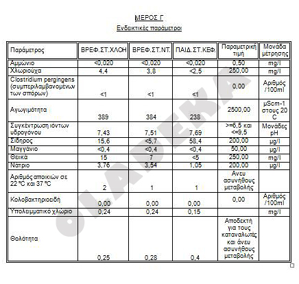 «Αποτελέσματα ανάλυσης νερού»
