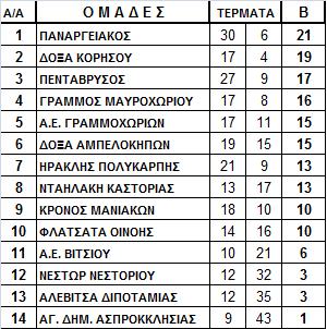 Τα αποτελέσματα της 8ης αγωνιστικής της Α΄ Κατηγορίας Καστοριάς που έγινε το Σάββατο 29-10-11 είναι τα εξής: