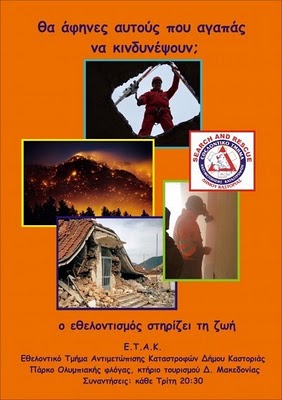 Ξεκινούν σήμερα Τρίτη 4/10/11 τα μαθήματα στο εθελοντικό τμήμα αντιμετώπισης καταστροφών Καστοριάς!
