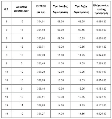 αριθμ. 11/2011 απόφαση του Δημοτικού Συμβουλίου Νεστορίου, τις εξής ώρες και με ελάχιστο όριο πρώτης προσφοράς, το έναντι αναγραφόμενο, σε κάθε οικόπεδο, ποσό.