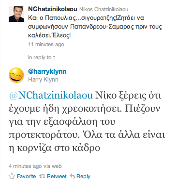 “Νίκο ξέρεις ότι έχουμε ήδη χρεοκοπήσει. Πιέζουν για την εξασφάλιση του προτεκτοράτου. Όλα τα άλλα είναι η κορνίζα στο κάδρο.”
