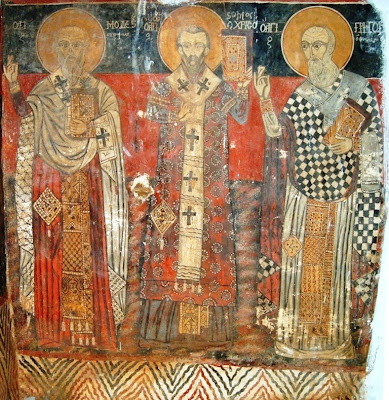 Ο άγιος Μόδεστος και δύο Ιεράρχες.