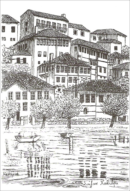 «Ένα θαυμάσιο κύπελλο ακυμάντων νερών, στεφανωμένο ολόγυρα από γραφικά βουνά, γεμάτα δροσερά χωριουδάκια, τεχνουργημένο εξακόσια μέτρα πάνω από τη θάλασσα. Μια γλώσσα στεριάς που μπαίνει βαθιά μέσα στο κύπελλο τούτο και καταλήγει σε κομψό ανασήκωμα, σ’ ένα λόφο πλασμένο για την πιο μακάρια αναπόληση. Και στο στενότερο μέρος της γλώσσας αυτής, ανάμεσα στην υπόλοιπη στεργιά και το λόφο, πενήντα μέτρα στο ψηλότερο σημείο της, απάνω από τα νερά της λίμνης , χτισμένη μια πολιτεία, που παρ’ όλο το ξανάνιωμά της, διατηρεί απείραχτο, γνήσιο και γεμάτο πραγματικό περιεχόμενο το μεσαιωνικό χαρακτήρα της.