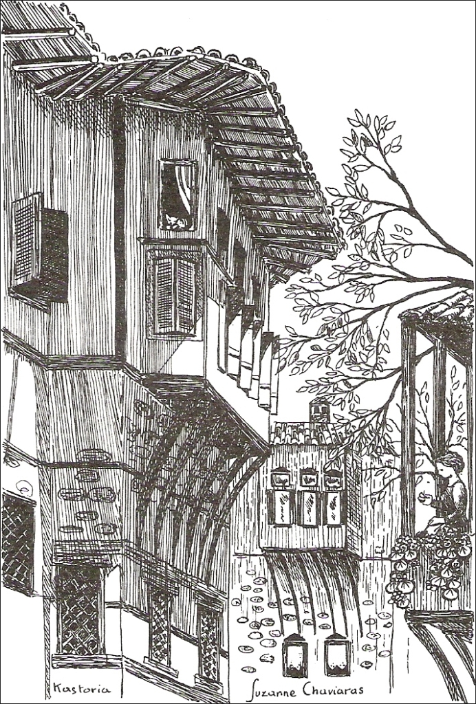 Οι προαναφερόμενες φυσικές και οικιστικές ομορφιές της Καστοριάς προσέλκυαν ανέκαθεν και προσελκύουν πολλούς και ποικίλους καλλιτέχνες, οι οποίοι, αναλόγως, τις φωτογραφίζουν, τις σχεδιάζουν και τις ζωγραφίζουν. Στους καλλιτέχνες αυτούς περιλαμβάνεται και η Βελγίδα (Φλαμανδή) ζωγράφος – υδατογράφος Suzanne Elsermans – Chaviaras / Σούζαν Χαβιάρα, που ζει κι εργάζεται στην Αθήνα. Η κ. Χαβιάρα ζωγράφισε επιτυχώς με πενάκι και σινική μελάνη επάνω σε χαρτί αρκετά τοπία και αρχοντικά της Καστοριάς. Τα έργα της αυτά τα εκτύπωσε ως καλαίσθητα και συλλεκτικά επιστολικά δελτάρια (καρτ – ποστάλ) η εταιρεία Art &Creation (Τέχνη και Δημιουργία), για λογαριασμό του Καστοριανού φιλότεχνου κ. Αργυράκη Παύλου, ο οποίος και τα διαθέτει στο κατάστημα τουριστικών δώρων που διατηρεί στην Καστοριά. Δέκα απ’ τα εν λόγω επιστολικά δελτάρια παρουσιάζονται εδώ.