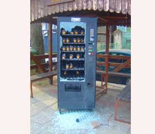 Φτάσαμε μέχρι εκεί… Άγνωστοι διέρρηξαν χθες βράδυ, τον κερματοδέκτη του μηχανήματος, που παρέχει τροφές, για να ταϊζουν οι επισκέπτες τα πουλιά της λίμνης και αφαίρεσαν μικρό αριθμό κερμάτων, σύμφωνα με τις εκτιμήσεις της αστυνομίας.