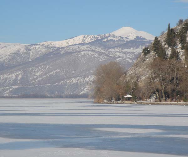 Μια αλλιώτικη μορφή παίρνει η λίμνη την εποχή της βαρυχειμωνιάς, του τσουχτερού κρύου που ξεπαγιάζουν οι μύτες, τότε που ολόκληρη η επιφάνειά της παγώνει σε αρκετό πάχος και γίνεται ένας απέραντος «δουξάτος» χωρίς καρφιά, όπως έλεγαν οι παλιοί Καστοριανοί, ή ένας γυαλοπάης όταν παγώσει χωρίς αγέρα και χιόνια.