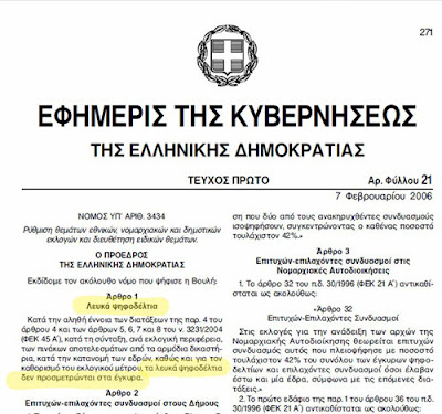 Aκολουθεί το ΦΕΚ του νόμου 3434/06 Νόμος Παυλόπουλου: