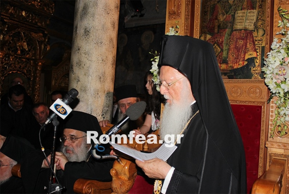 Ο Οικουμενικός Πατριάρχης για ακόμη μία φορά, στην αντιφώνηση του αναφέρθηκε στην προσωπικότητα της Οσίας, τονίζοντας ότι με την άσκηση και τους αγώνες της είλκυσε την χάριν του Κυρίου.