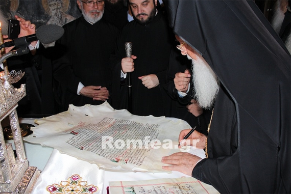 “Το καστρομονάστηρο της μαρτυρικής Κλεισούρας και το θεομητορικό ενδιαίτημα της Παναχράντου Δεσποίνης ημών Θεοτόκου και Αειπαρθένου Μαρίας, άνοιξε σήμερα πανηγυρικά τις πύλες του για να υποδεχθεί, όχι οποιονδήποτε Αρχιερέα, αλλά την Υμετέρα Παναγιότητα την σεπτή κορυφή της Ορθοδοξίας.”