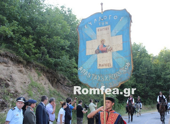 Εκεί λίγο πριν φτάσει στην είσοδο της Μονής έτυχε θερμής υποδοχής από άγημα στρατιωτών, καθώς και από 5 καβαλάρηδες οι οποίοι τον συνόδευσαν μέχρι τον τάφο της