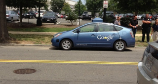 Μπορεί να μην έχουμε στοιχεία, έχουμε όμως φαντασία: Η αστυνομία κάνει σήμα στο αυτοκίνητο της Google να κάνει στην άκρη. Εκείνο υπακούει. Οι αστυνομικοί βγαίνουν έξω και πλησιάζουν το όχημα.