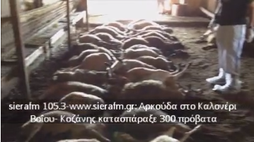 300 πρόβατα κατασπάραξε αρκούδα στο Καλονέρι Βοΐου- Κοζάνης τα Ξημερώματα της Κυριακής 12 Αυγούστου. Οι εικόνες που θα δείτε καθώς και το βίντεο είναι πολύ σκληρές. Η καταστροφή στην κτηνοτροφική μονάδα του δημοτικού συμβούλου Βοΐου Παναγιώτη Περπερή υπολογίζεται στα