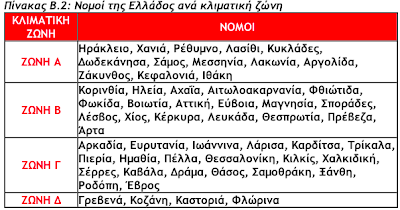 Ήδη με τον Κανονισμό Ενεργειακής Απόδοσης που είχε καθιερώσει το υπ.Περιβάλλοντος είχαν καθοριστεί τέσσερεις ενεργειακές ζώνες στην χώρα, οι οποίες έχουν ως εξής: