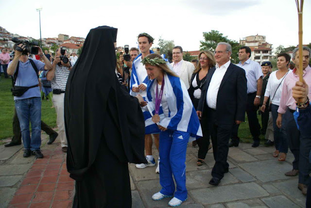 Στην τελετή υποδοχής των Καστοριανών Ολυμπιονικών της κωπηλασίας, της Χριστίνας Γιαζιτζίδου, που κέρδισε το χάλκινο μετάλλιο, και του Γιάννη Χρήστου, που αγωνίστηκε θαρραλέα, παρ’ όλο που δεν κέρδισε κάποιο μετάλλιο βρέθηκε ο Σεβασμιώτατος Μητροπολίτης Καστορίας κ. Σεραφείμ.