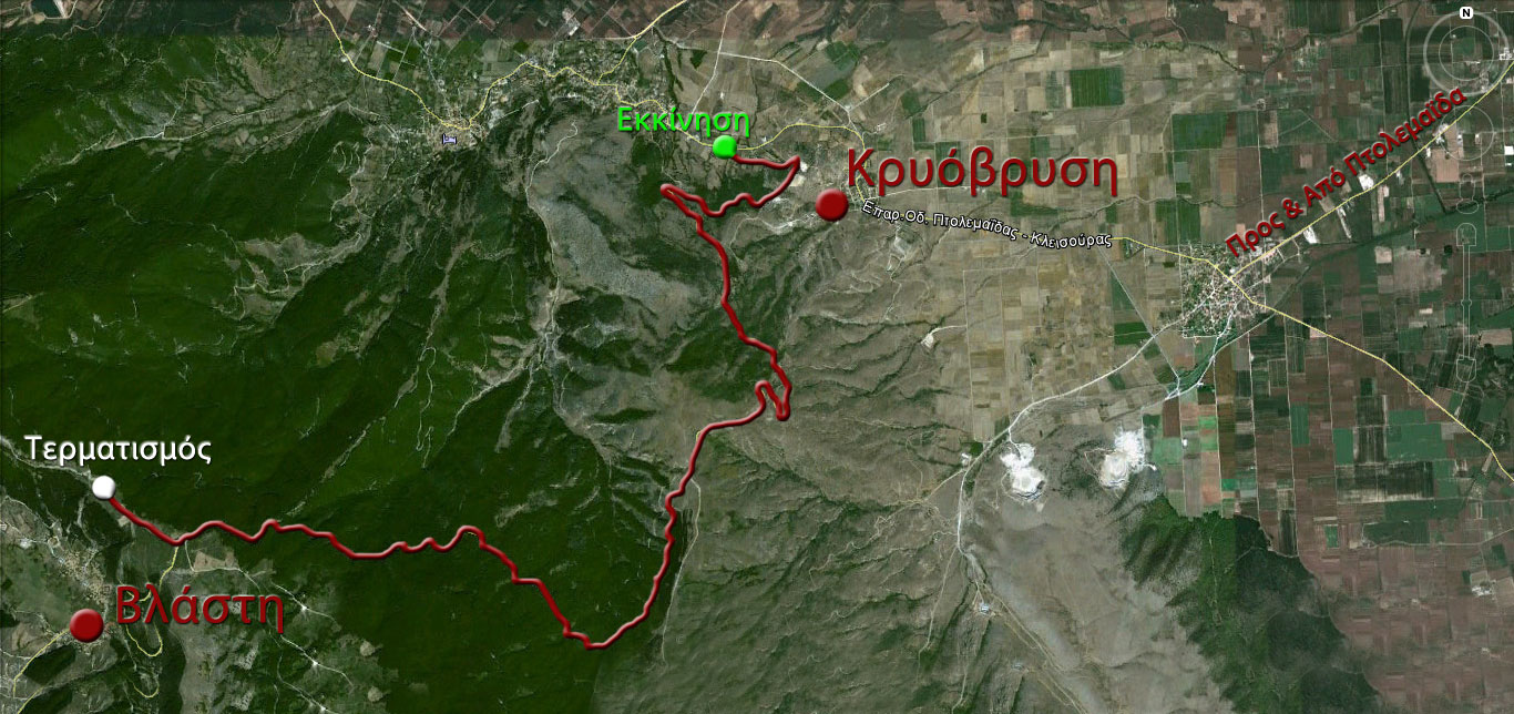 Είναι τεχνική, πολύ απαιτητική, σε κάποια σημεία γρήγορη με κύριο χαρακτηριστικό την μεγάλη αλλά ομαλή υψομετρική διαφορά της αφετηρίας από τον τερματισμό. Η δύο φορές επαναλαμβανόμενη ειδική διαδρομή με την αφετηρία έξω από το χωριό Κρυόβρυση, 15 χιλιόμετρα έξω από την…Πτολεμαΐδα, και τερματισμό λίγο πριν το παραδοσιακό χωριό Βλάστη, σε υψόμετρο 1180 μ. είναι έτοιμη και σας περιμένει.