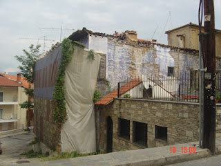Το “αμπαλαρισμένο” με πανώ κτίριο, που βρίσκεται απέναντι από τον Αη Γιώργη είναι το ημικατεστραμμένο αρχοντικό Παπαχρήστου, που πριν από μερικά χρόνια παραχωρήθηκε από τον Δήμο Καστοριάς “εν χορδαίς και οργάνοις” στην ελληνοαμερικανική οργάνωση των ΑΧΕΠΑΝΣ, με σκοπό να απαπαλαιωθεί και να λειτουργήσει ως βιβλιοθήκη.