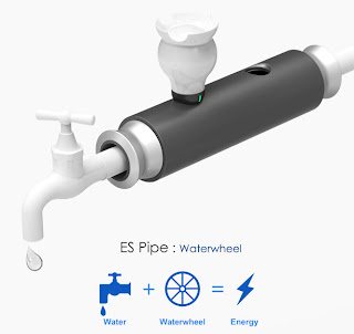 Και εμπνεύστηκε το ES Pipe Waterwheel, το οποίο παράγει ρεύμα από σωλήνες νερού