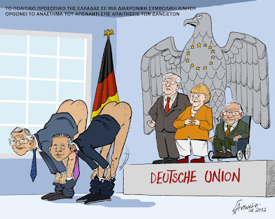 Ανενδοίαστα δηλαδή το Βερολίνο απαιτεί να αναλάβουν οι ίδιοι οι Γερμανοί και οι ντόπιοι συνεργάτες τους, οι οποίοι μάλιστα θα τεθούν υπεράνω των νόμων της ελληνικής δημόσιας διοίκησης, τη διακυβέρνηση της Ελλάδας! Και αυτά τα κατάπτυστα ανθρωπάρια, οι πολιτικοί ηγέτες των κομμάτων της συγκυβέρνησης, λένε «ναι» στην παράδοση της χώρας, από την οποία βεβαίως θα ωφεληθούν οι σύγχρονοι αδίστακτοι «μαυραγορίτες» του ελληνικού κεφαλαίου.
