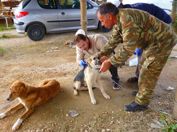 Έτσι, συνεργείο του Δήμου συγκέντρωσε 15 περίπου σκυλιά στον χώρο του αμαξοστασίου, τοποθέτησε κολάρα σε αυτά και στη συνέχεια με τη βοήθεια κτηνιάτρου πραγματοποιήθηκε ο εμβολιασμός.