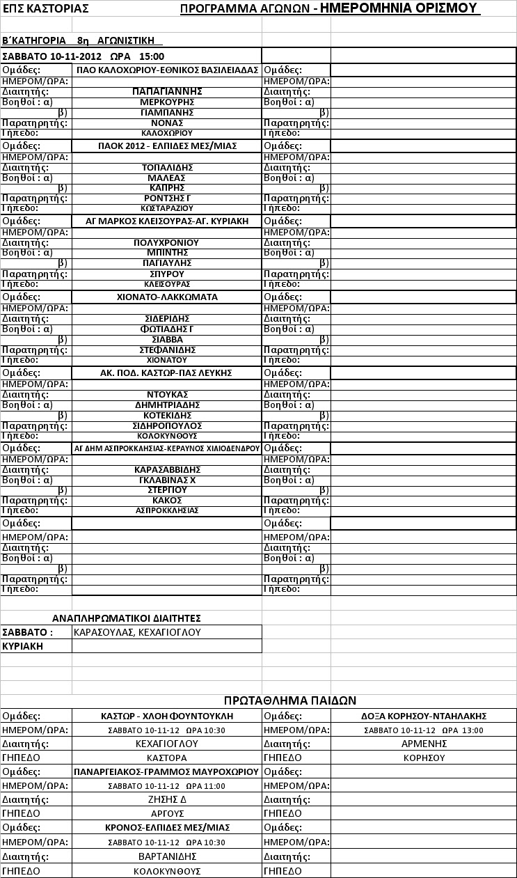 τους διαιτητές και τους βοηθούς των αγώνων της 8ης αγωνιστικής της Β΄ Κατηγορίας: