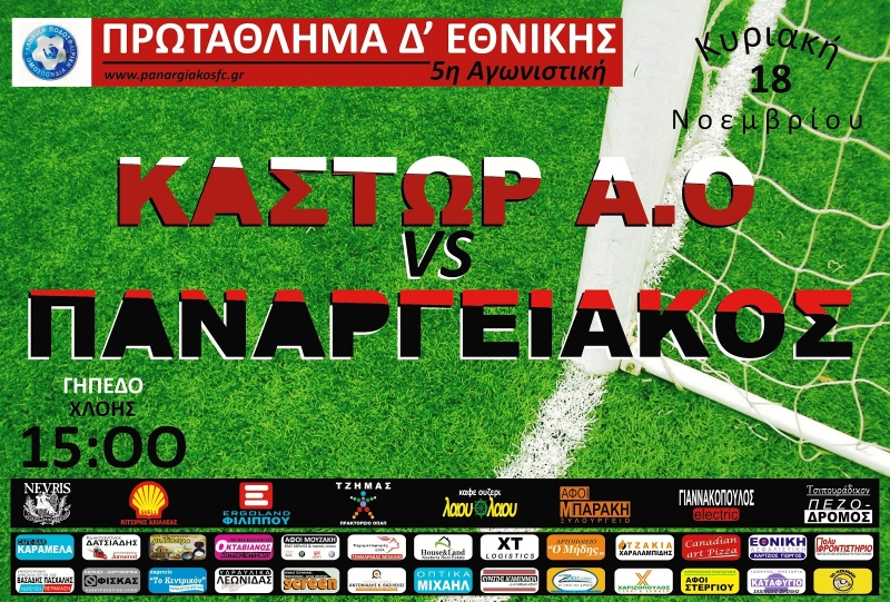 Ξεσηκωμός επικρατεί στα «στέκια» της Καστοριάς ενόψει του μεγάλου ντέρμπι της πέμπτης αγωνιστικής για τον 2ο όμιλο της Δ’ Εθνικής, μεταξύ του ΑΟ Κάστωρ και του Παναργειακού Άργους Ορεστικού. Ώρα έναρξης 15:00 μ. μ. (18/11).