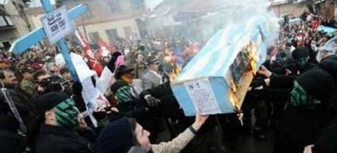 Το καρναβάλι πραγματοποιήθηκε χθες το βράδυ στο πλαίσιο του εορτασμού της Πρωτοχρονιάς με βάση το Ιουλιανό ημερολόγιο και συμπεριλάμβανε ένα φέρετρο τυλιγμένο με τη φλεγόμενη ελληνική σημαία και ένα κηδειόσημο που έγραφε: «Απρόσμενα, μετά από μακροχρόνια ενόχληση, μας άφησε ο αγαπητός μας γείτονας, πρώην τουρκική επαρχία – Ελλάδα ή Γιουνανιστάν ή όπως αλλιώς μπορεί να ονομαστεί – στην ηλικία των 181 χρόνων. 1830 (Πρωτόκολλο του Λονδίνου) – 2011 (Χάγη). Η κηδεία θα λάβει χώρα στο κέντρο του Βέβτσανι στις 13 και 14 Ιανουαρίου.