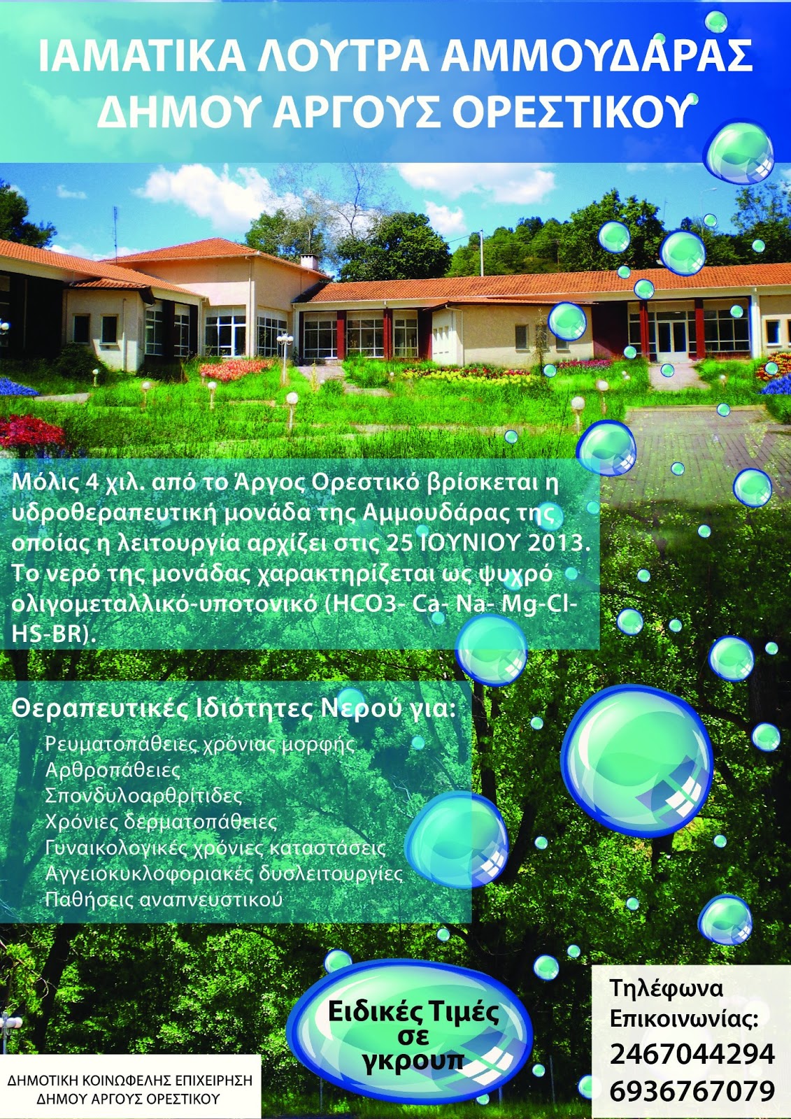 ΣΤΙΣ 25 ΙΟΥΝΙΟΥ ΞΕΚΙΝΑ Η ΛΕΙΤΟΥΡΓΙΑ ΤΩΝ ΙΑΜΑΤΙΚΩΝ ΛΟΥΤΡΩΝ ΑΜΜΟΥΔΑΡΑΣ (ΑΦΙΣΑ)