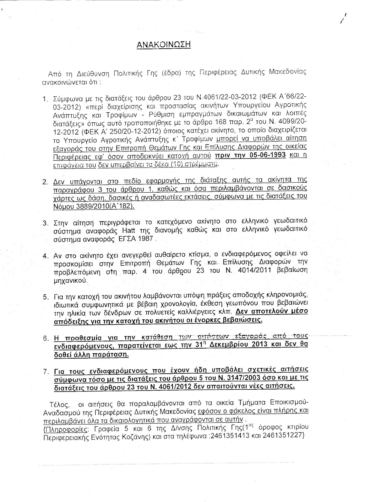 Η ηλεκτρονική υποβολή της αίτησης πληρωμής πρέπει να γίνει το αργότερο μέχρι και την 29 Ιουλίου 2013, ενώ η ταχυδρομική αποστολή, στην ανωτέρω διεύθυνση, της υπογεγραμμένης και θεωρημένης, για το γνήσιο της υπογραφής, αίτησης πληρωμής – υπεύθυνης δήλωσης, πρέπει να γίνει το αργότερο μέχρι και την 09 Αυγούστου 2013.