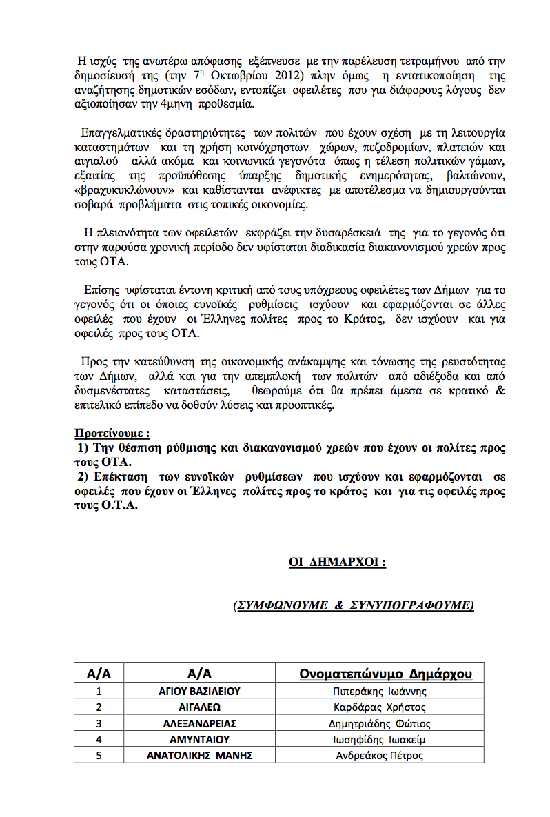 Επισυνάπτεται η επιστολή των Δημάρχων.