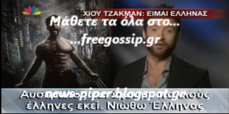 Ο ηθοποιος hugh jackman σε συνεντευξη του αποκαλυψε οτι εχει εχει ελληνικες ριζες,αφου προερχεται απο οικογενεια μεταναστων της οποιας το επιθετο ηταν μπελος.Απο πληροφοριες που εχει το μλοκ μας μαθαμε οτι ο παππους του ειναι απο το Κωσταραζι.