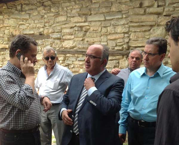 Οι δύο θεματικοί Αντιπεριφερειάρχες Φιλώτας Ταλίδης και Χρήστος Ευαγγέλου συζητάνε με τον π. Στέφανο για τις ζημιές που υπέστησαν οι εκκλησιές της Αιανής μετά τις σεισμικές δονήσεις των τελευταίων ημερών