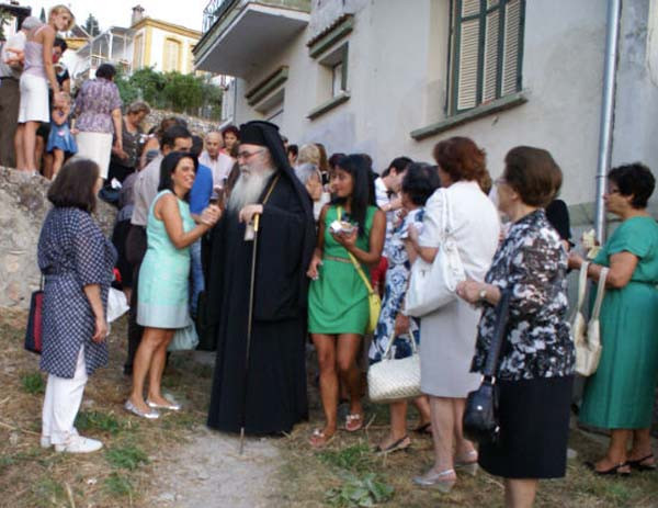 Το απόγευμα της Δευτέρας 26 Αυγούστου, τελέσθηκε ο Αρχιερατικός Εσπερινός χοροστατούντος του Σεβασμιωτάτου Μητροπολίτου Καστορίας κ.κ. Σεραφείμ και την παρουσία εκατοντάδων πιστών, που προσέτρεξαν στη χάρη του Αγίου Φανουρίου αλλά του πρόσφεραν και τα δώρα τους.