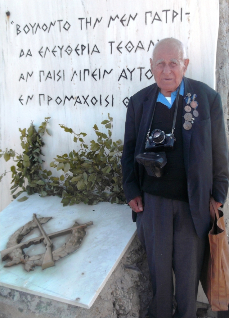 με τα παράσημά του στο μνημείο Βιτσίου.