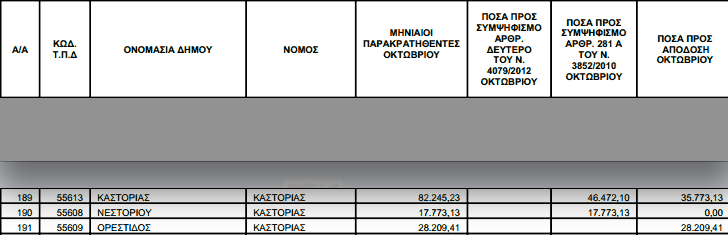 προς αυτούς.ΔΕΙΤΕ ΤΑ ΠΟΣΑ ΠΟΥ ΑΦΟΡΟΥΝ ΣΤΟΥΣ ΔΗΜΟΥΣ ΤΗΣ ΚΑΣΤΟΡΙΑΣ: