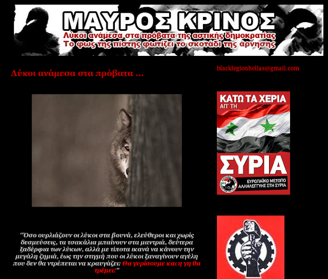 Εισερχόμενος κανείς στον δικτυακό τόπο της οργάνωσης: http://mavroskrinos.blogspot.gr/, διαβάζει κανείς στην τελευταία χρονολογικά ανάρτηση μέλους ονόματι Στέλιος Αλεξόπουλος σχετικά με τις πρόσφατες τραγικές εξελίξεις που πυροδότησε η δολοφονία του Παύλου Φύσσα: