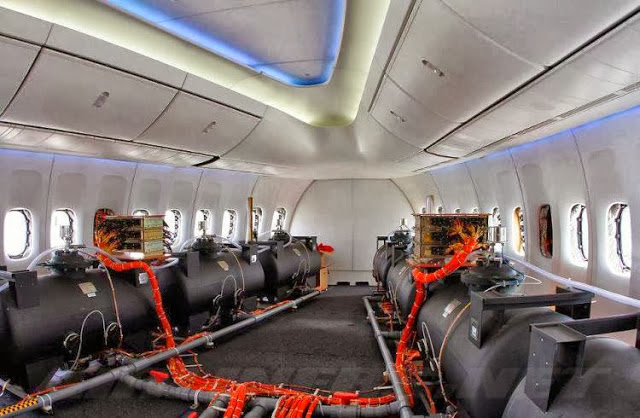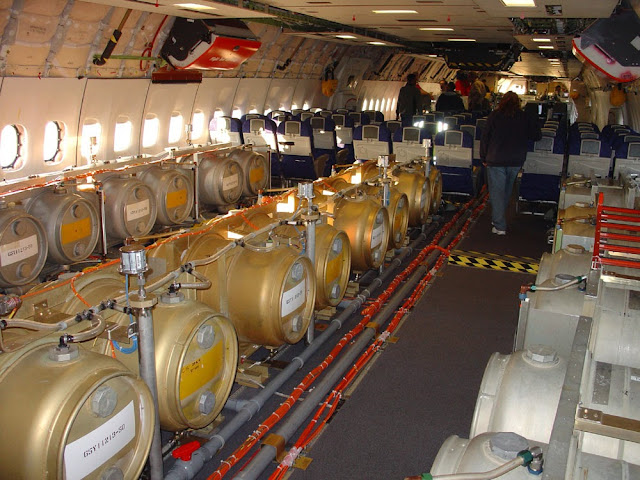 Ορισμένοι ισχυρίζονται ότι είναι απλώς βαρέλια έρματος “Ballast Barrells”, αν και όπως φαίνεται ξεκάθαρα από την δεύτερη φωτογραφία (δεν μπορεί να είναι απλώς βαρέλια!) είναι δεξαμενές που βρίσκονται στο εσωτερικό «πρώην» επιβατικού αεροσκάφους που έχει