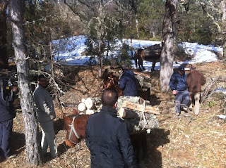 “Από την πλευρά της Αλβανίας όμως το έδαφος είναι ομαλό και οι Αλβανοί έκαναν πρόχειρους δρόμους και εκτός από τα ζώα, χρησιμοποιούν τρακτέρ και μικρά φορτηγά με τα οποία κουβαλούν τα δασικά προϊόντα”.