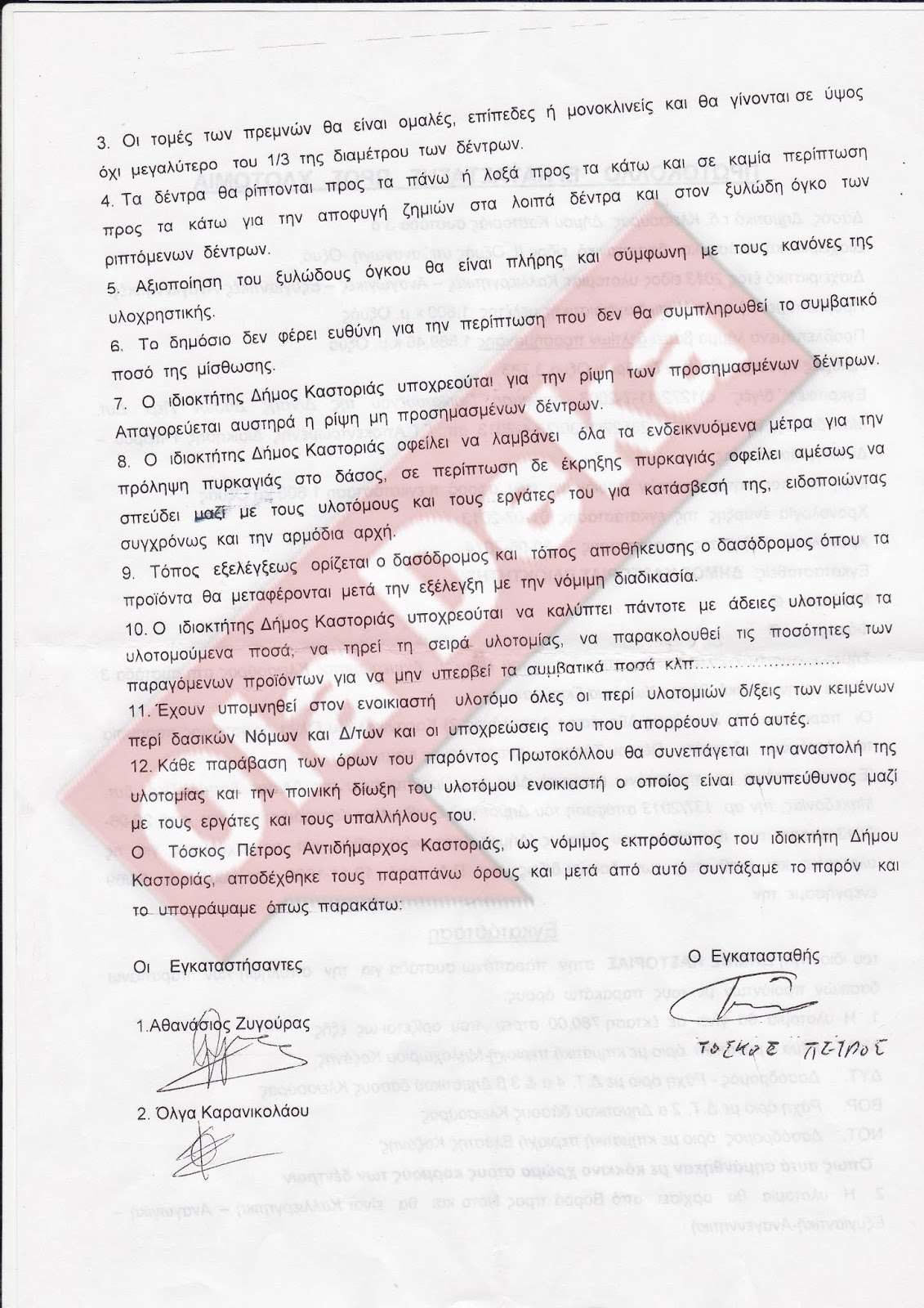 Αυτό σημαίνει ότι οι υπεύθυνοι (που αναφέρονται στο πρωτόκολλο) έχουν ήδη παραβεί το πρωτόκολλο, αφού για κάποιον λόγο (τι κάνει νιάου στα κεραμίδια) έκοψαν 500 περίπου τόνους καυσόξυλων επιπλέον, σε σχέση με την άδεια που είχαν στα χέρια τους από το δασαρχείο.