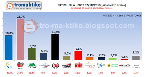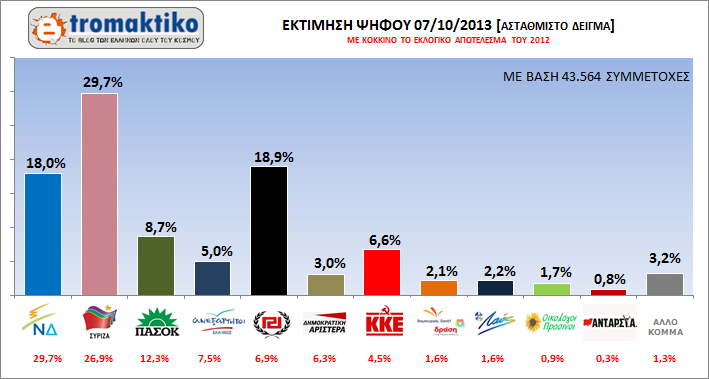 Μετά τις ραγδαίες πολιτικές εξελίξεις και την υπόθεση της Χρυσής Αυγής όλοι περιμέναμε να δούμε πως θα αντιδράσει ο κόσμος. Ιδού τα ΑΠΟΤΕΛΕΣΜΑΤΑ: