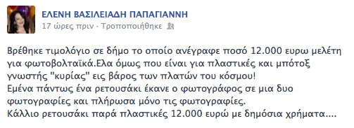 Σε σχόλια και αναφορές της η κ. Παπαγιάννη προχωρά σε μια σοβαρή καταγγελία μέσα από το προφίλ της στο facebook
