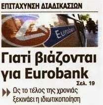 Αυτό που συμβαίνει στην πατρίδα, δεν έχει προηγούμενο στον δυτικό πολιτισμό. “Βιάζονται” λέει για την Eurobank. Βιάζονται δηλαδή να ιδιωτικοποιήσουν μία τράπεζα που πεταξε στα σκουπίδια ακόμα και ο… βασικός της μέτοχος, αλλά έλαβε δισεκατομμύρια από τον Ελληνικό λαό. Το πονηρό σημείο όμως είναι το ΓΙΑΤΙ.