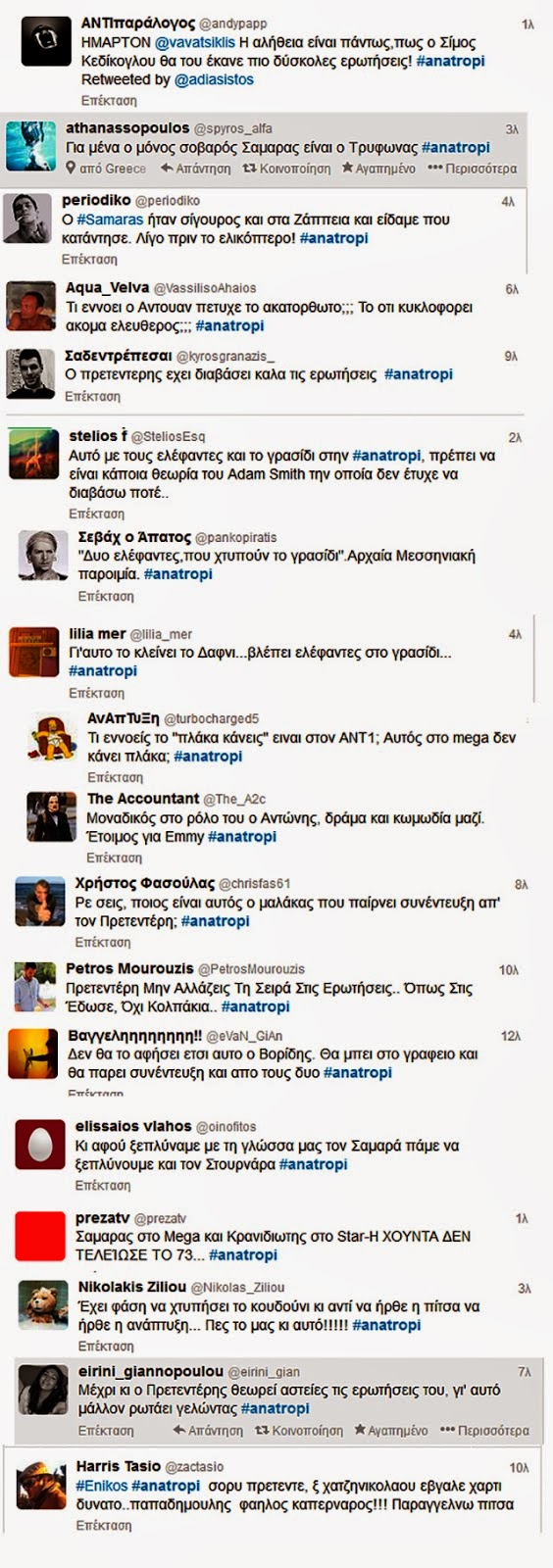 ΤΗΝ ΩΡΑ ΤΗΣ ΣΥΝΕΝΤΕΥΞΗΣ ΓΙΝΟΤΑΝ ΤΗΣ ΑΝΑΤΡΟΠΗΣ ΣΤΟ TWITTER